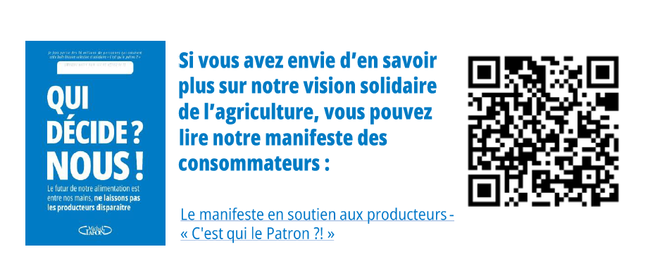 Depuis 8 ans, avec tous les consommateurs de la démarche « C’est qui le Patron ?! » nous prouvons qu’en ajoutant quelques centimes à un produit, on peut garantir un revenu juste aux producteurs et pérenniser la filière.
