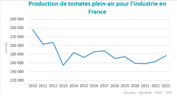 Côté fabricants, trois industriels se partagent 94 % des volumes. Deux d’entre eux sont des filiales de coopératives : le “Panier provençal” de la coopérative CAPL, qui transforme environ 80 000 tonnes de tomates, et “Tomates d’Aquitaine” de la coopérative Terres du Sud (basée à Bergerac). Enfin, l’entreprise familiale Louis Martin, producteur de notre concassé solidaire 🤗, basée à Monteux (84) a accru sa capacité industrielle de 15 % ces dernières années.