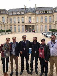 Des membres et producteurs de « C’est qui le Patron ?! » à l’Élysée en 2017.